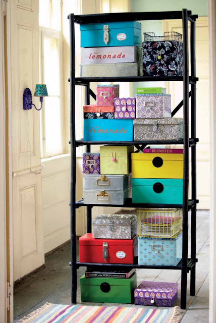 O catálogo traz uma infinidade de caixas organizadoras, de vários tamanhos e materiais. Uma mais linda que a outra. Desse jeito, até uma estante bagunçada fica bonita.